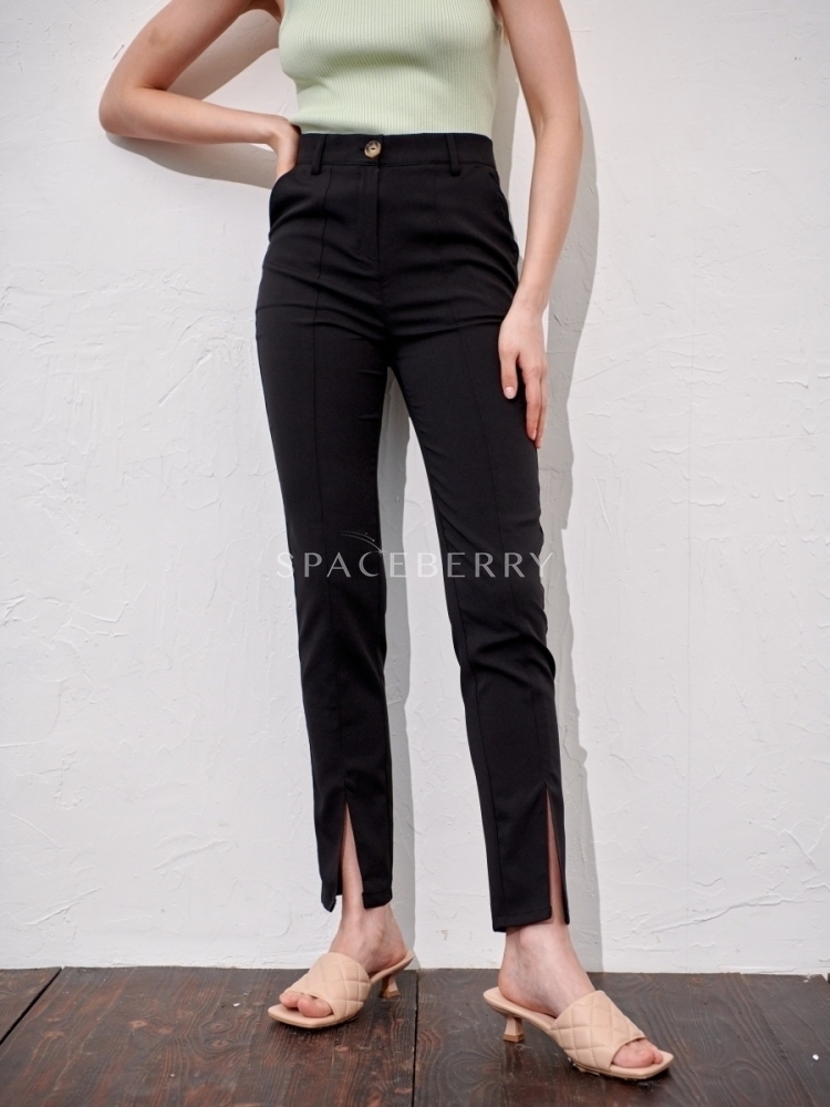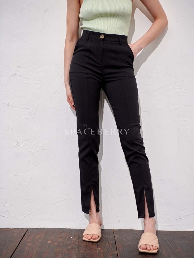 У нас скидки на брюки! Женские узкие брюки - идеальный вариант для девушки как для осенней и весенней погоды, так и холодной зимы. Штаны из костюмной ткани бренда Spaceberry на молнии подойдут как для офиса, так и модным подросткам в школу. Оригинальная модель идеально сидит на фигуре любого типа благодаря завышенной линии талии, шлевкам для ремня, а также отстроченным стрелкам, которые визуально стройнят ноги, а материал создаст удобство и комфорт для повседневной носки. Их можно носить как с оверсайз кофточкой, так и с облегающим топом. Такие демисезонные, облегающие, расклешенные к низу брюки с разрезами станут отличным подарком на новогодние праздники для подруги. Плотный материал приятно прилегает к телу. С такими брюками можно создать стильный комплект с худи или пиджаком с блузкой. Стирать данную модель рекомендуется на режиме деликатной стирки 30 C. Вы можете найти другие модели одежды нашего бренда, кликнув на логотип Spaceberry. Будем рады вашим отзывам!